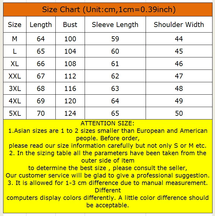 Размеры Таблица размеров (единица измерения: см, 1 см = 0,39 дюйма) |