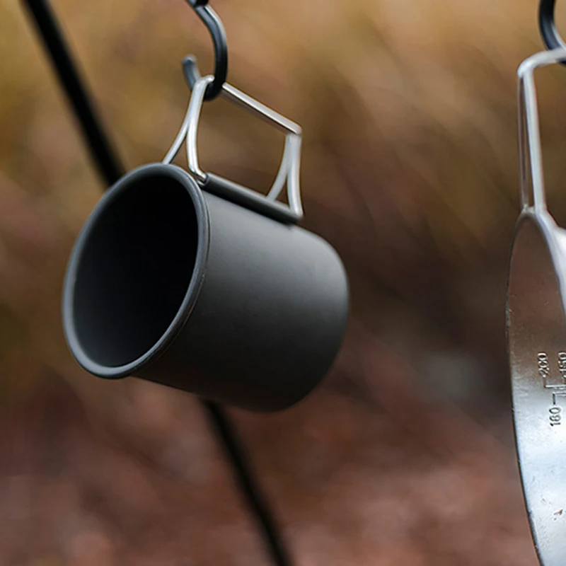 Чашка для воды из алюминиевого сплава антикоррозийная и долговечная. Он имеет складные ручки для удобного хранения и переноски, отличный выбор для кемпинга, пеших прогулок, альпинизма, пикника и других видов активного отдыха.