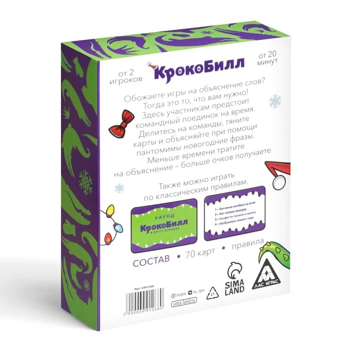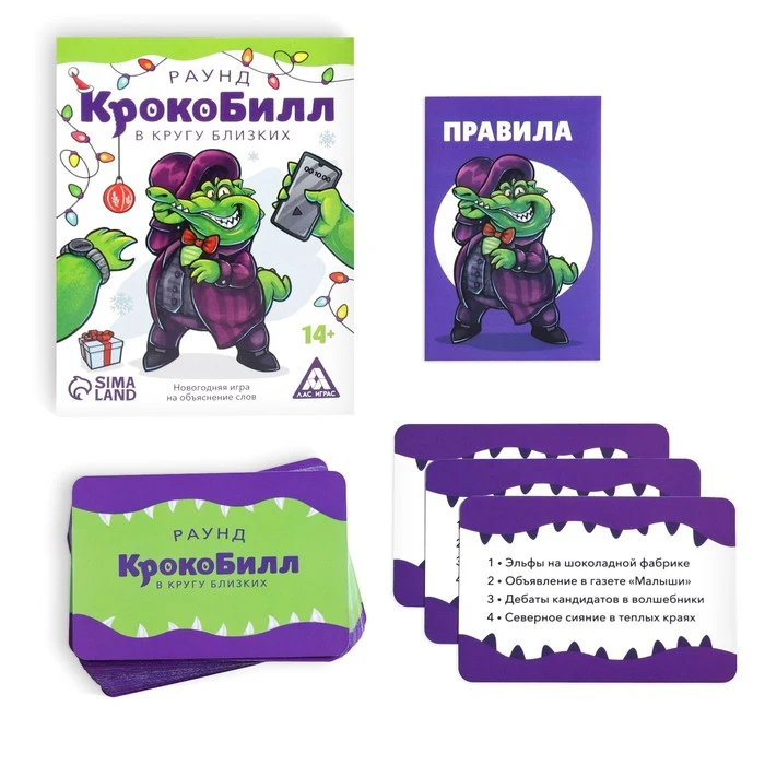 Новогодняя игра на объяснение слов "КрокоБилл" в кругу близких, раунд, 70 карт, 14+ 6991268