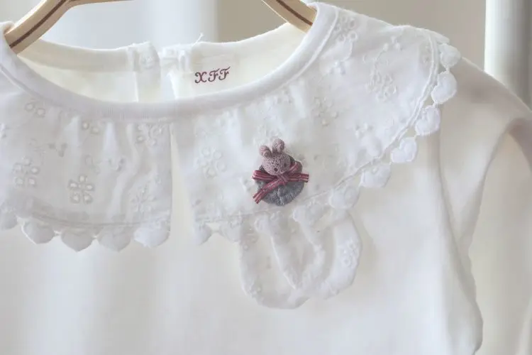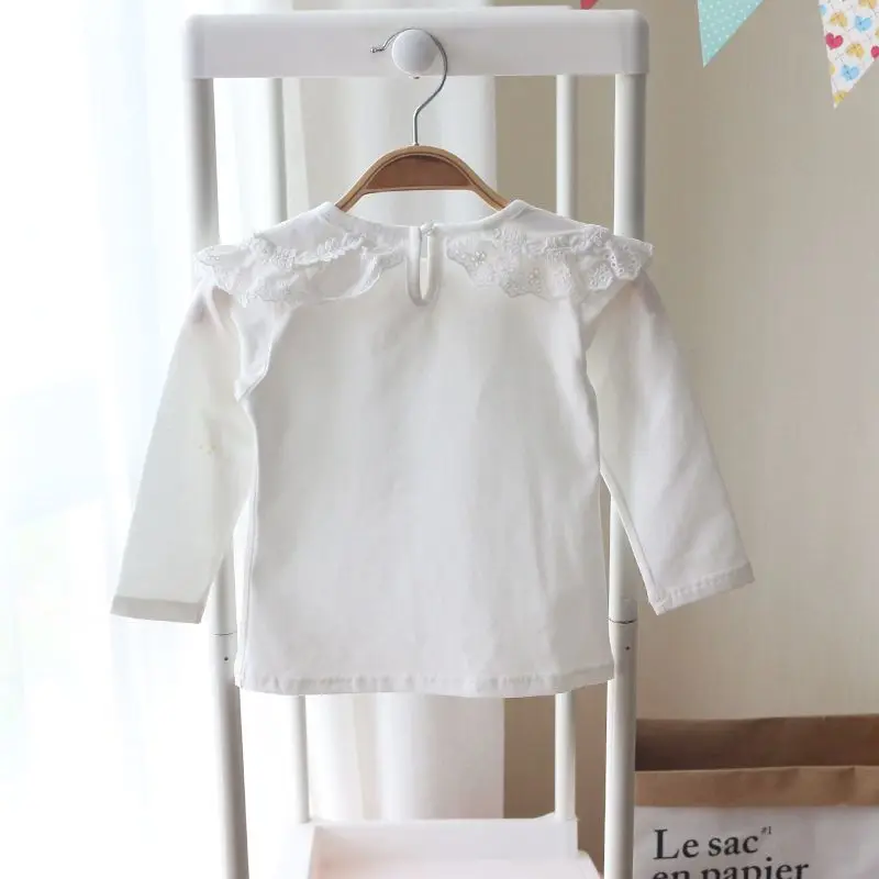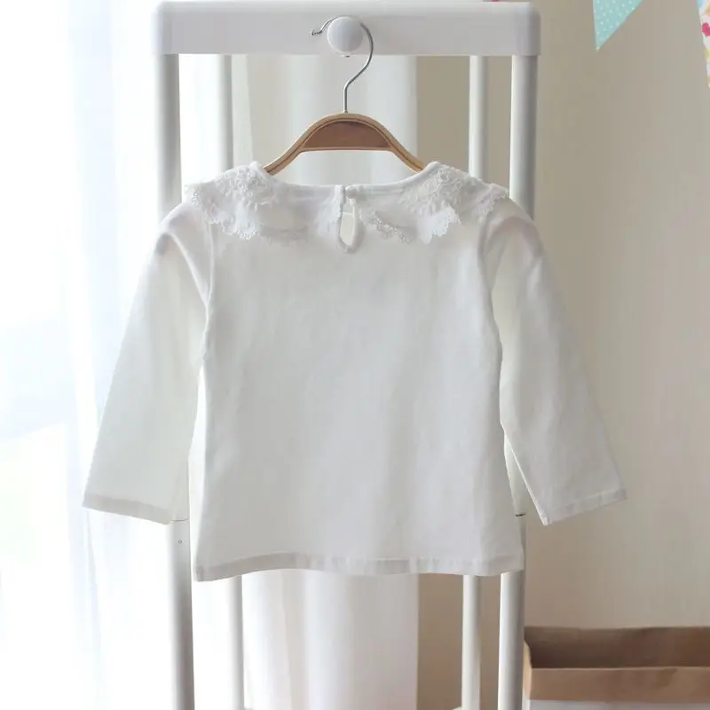 Отзывы о Осенняя новая белая детская футболка с отложным воротником Кружевная длинным