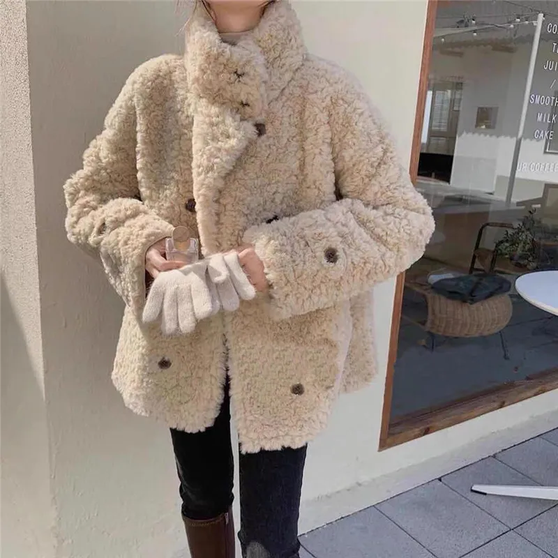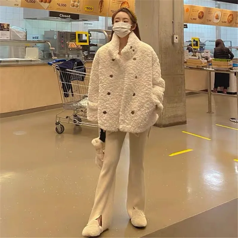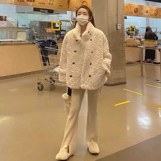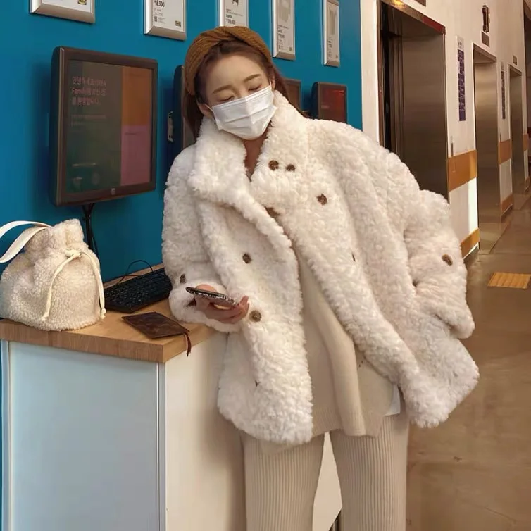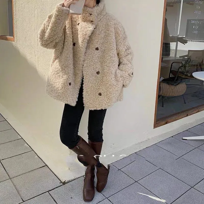 Отзывы о Корейская женская куртка двубортное свободное короткое пальто из овечьей шерсти