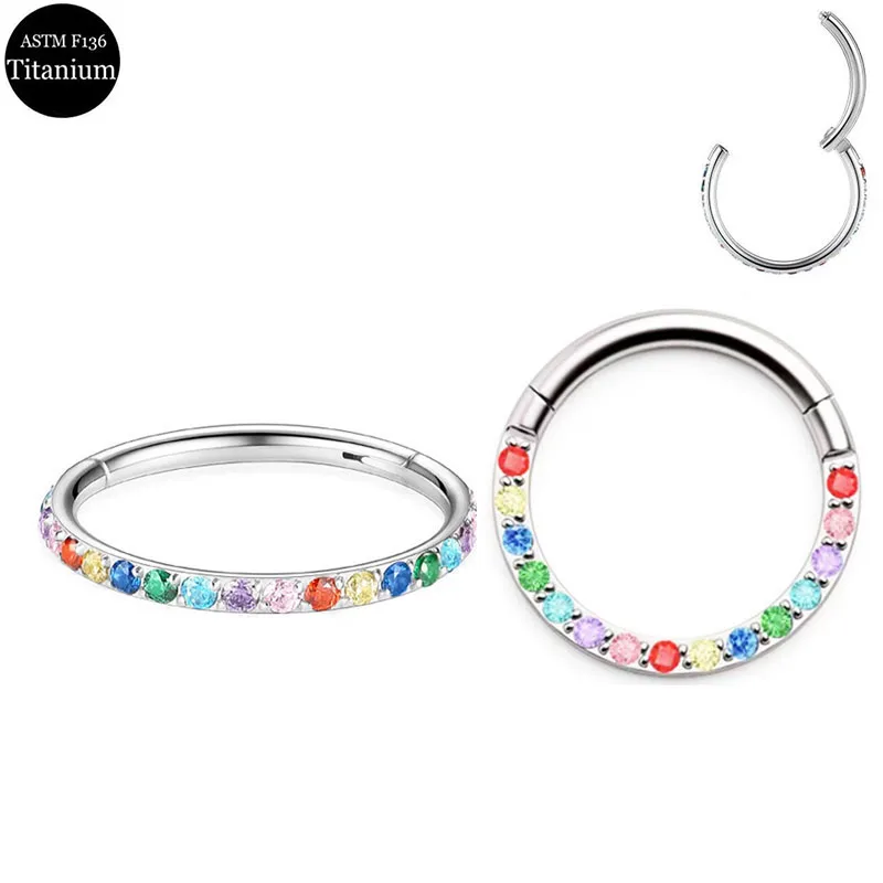 F136 титановый циркон камень 16 г высокое сегментное кольцо открытая маленькая перегородка пирсинг серьги для носа модный пирсинг ювелирные изделия