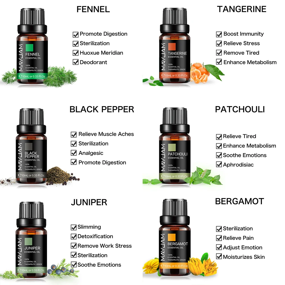 Идеальный необходимый набор эфирных масел для ароматерапевтических масел, масла для диффузоров, масел увлажнителя, масляных горелок, спа и воздухоочистителя.
