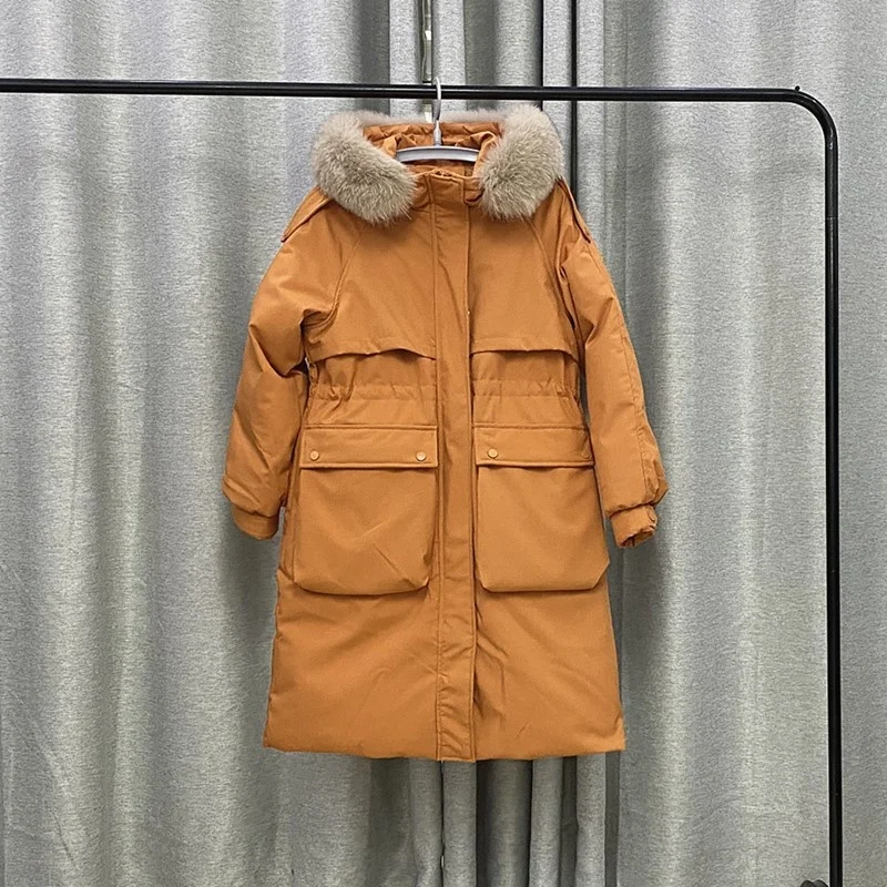 Отзывы о Женский пуховик средней длины белый свободного покроя с большим перьевым