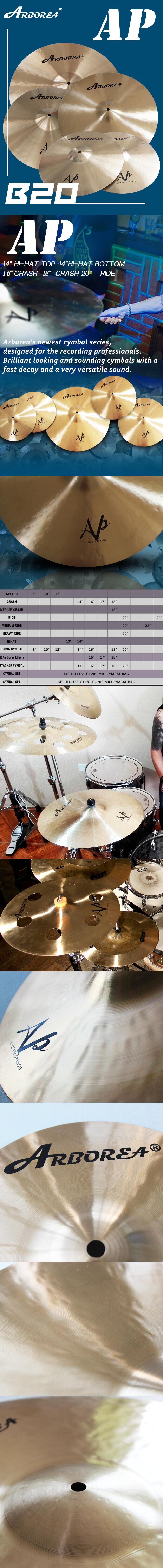 B20 cymbal является основной продуктовой серией бренда Arborea, включая девять серий убийцы, мясника, призрака, гравитации, рыцаря, дракона, AP, EDGE и HYBIRD AP. Продукты серии B20 имеют более профессиональный и громкий звук, который в основном подходит для профессиональных представлений и глубоко любим барабанщиками.