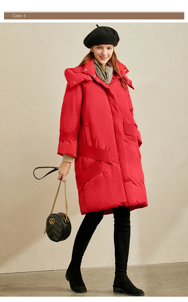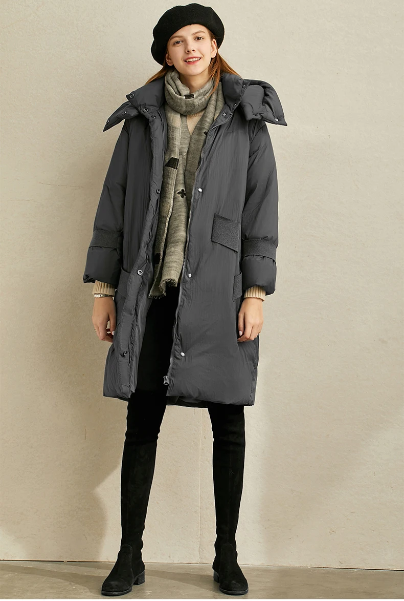 Отзывы о Amii минималистский Зимний пуховик Женская длинная куртка с капюшоном 90% белый