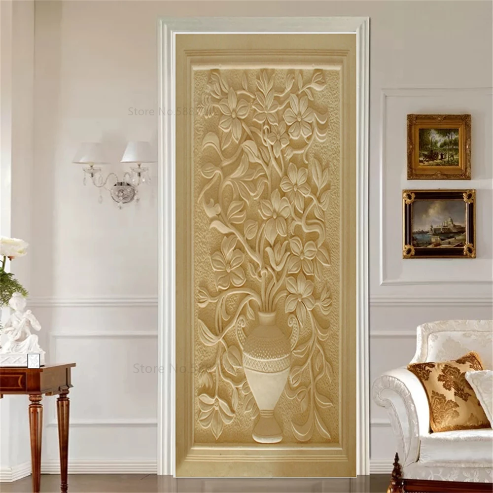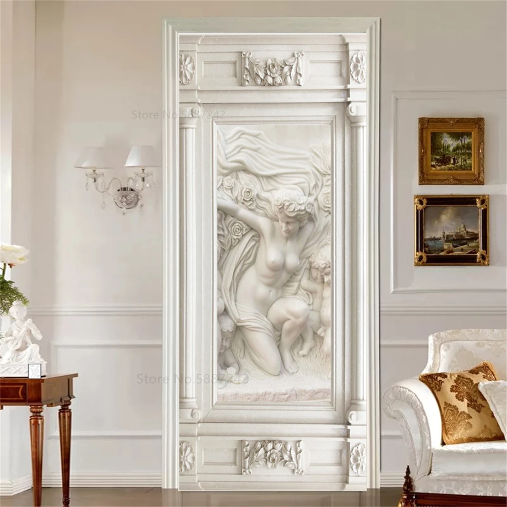 Отзывы о 3D Relief Woman Door Stickers For Entrance Bedroom Bathroom Carved Flower European Wallpaper Decoration Vinyls Modern Design | Дом и сад