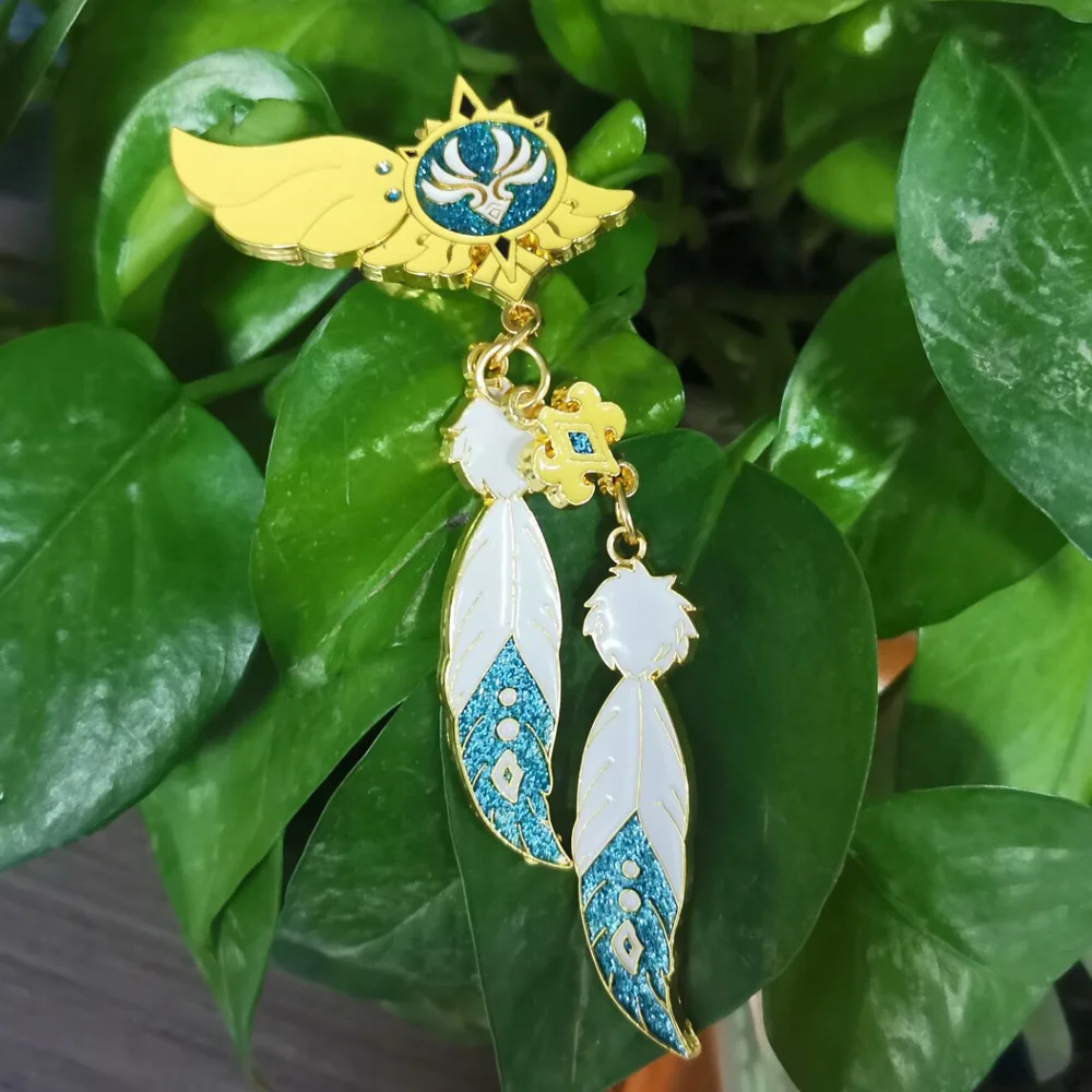 Горячая игра Аниме Yuanjin периферийный Венди металлический значок Бог глаз Брошь барбатос павлин хвост эмаль кулон Doujin ювелирные изделия