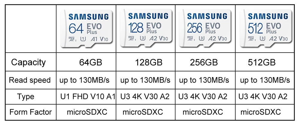 Отзывы о Карта памяти SAMSUNG EVO Plus 128 ГБ 256 512 A2 U3 V30 130 МБ/с./с Micro SD 64 Гб U1 A1 TF/SD карта C10 V10 |
