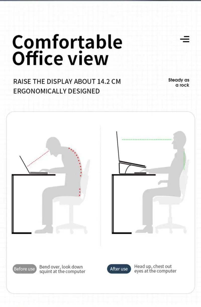 【Полое дно рассеивания тепла 】вентилируемая стойка для лифта имеет только две руки держателя, но не полностью плоскую поверхность, поэтому есть больше места, чтобы дать тепло вентиляцию и сохранить ваш ноутбук от перегрева.