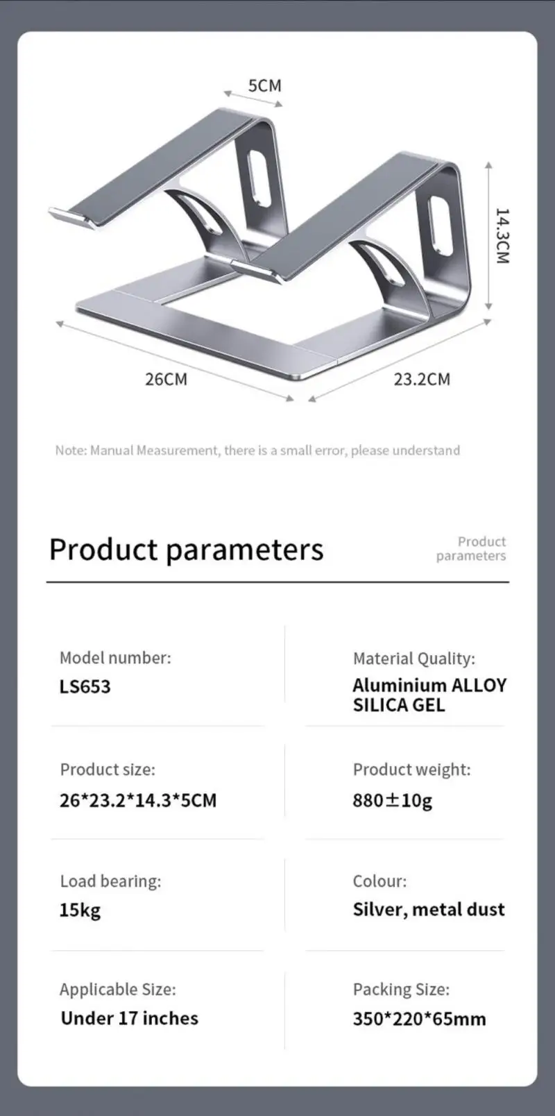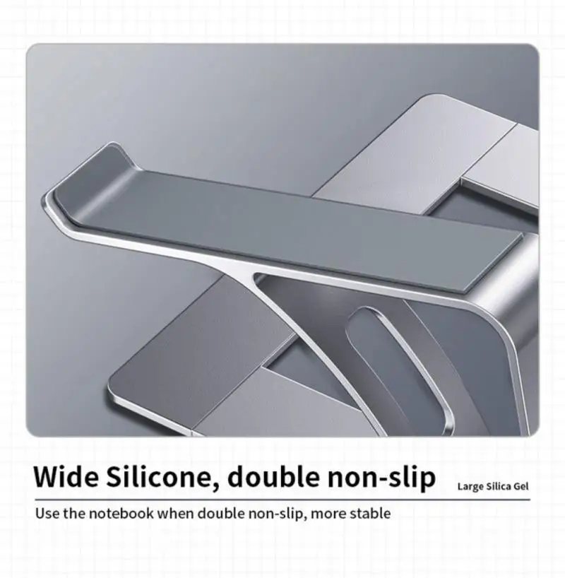 【Стабильный и долговечный 】 утолщенный материал из алюминиевого сплава, прочный и имеет меньший вес. Резина на держателе плотно прилипает к руке и обеспечивает стабильность вашего ноутбука на подставке. И резиновые ножки предотвращают скольжение подставки на рабочем столе.