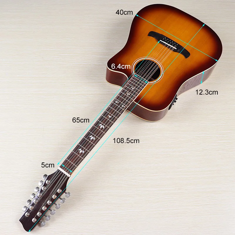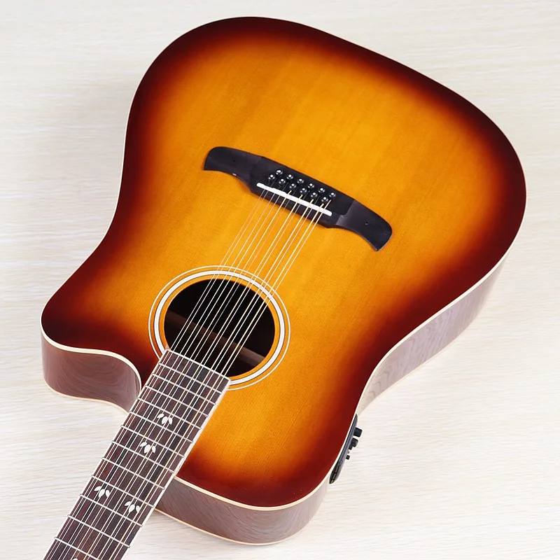 Высокоглянцевая электрическая акустическая гитара 12 струна sunburst Цвет 41 дюймов народная гитара твердая ель дерево cutaway дизайн с эквалайзером