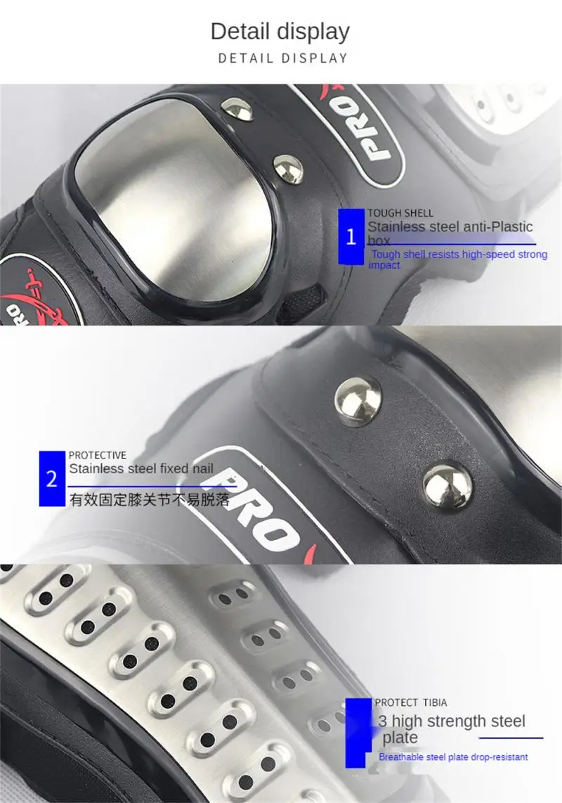 Функция: Защита от падения и столкновений. Его корпус изготовлен из нержавеющей стали, чтобы противостоять сильному воздействию. Он оснащен Демпферная губка для защиты костей и связок. Он оснащен крепежными гвоздями из нержавеющей стали для эффективного фиксации коленного сустава, который нелегко отвалить; Регулируемая эластичная лента, регулировка эластичной липучки в соответствии с вашим телом
