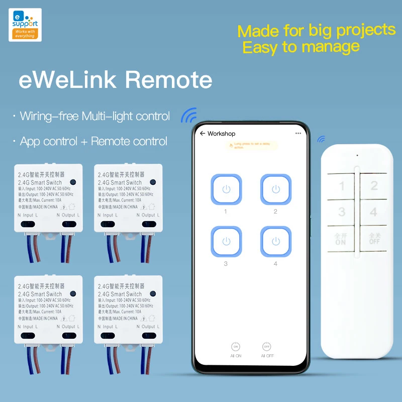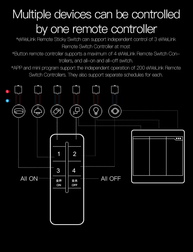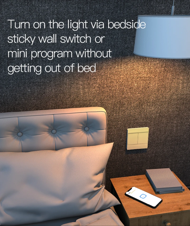 При использовании с пультом дистанционного управления 2,4G уникальный 8-клавишный дизайн может различать оборудование в каждой комнате дома по комнате и управлять всем оборудованием в разных комнатах с помощью разных клавиш. Он также может реализовывать Одно нажатие, когда выходите, DIY smart life, с этого момента. (За исключением 7 и 8 кнопок, которые фиксируются на полное включение и выключение, другие кнопки можно определить как переключатели, которые управляют несколькими устройствами в соответствии с их фактическими потребностями.)