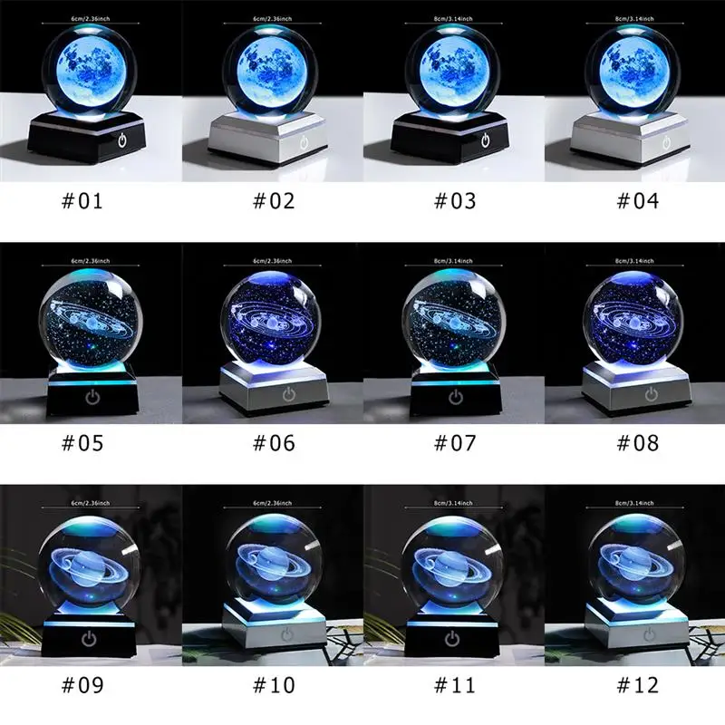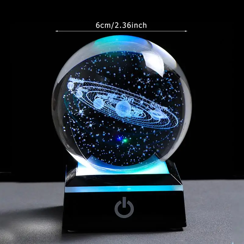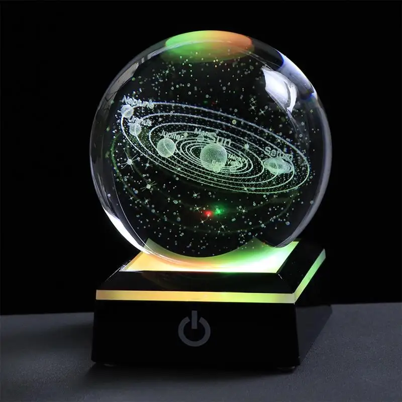 3D кристаллический светодиодный светильник Солнечная система шар лазерная гравировка планеты стеклянная сфера космическая модель Глобус украшение дома Астрономия подарок