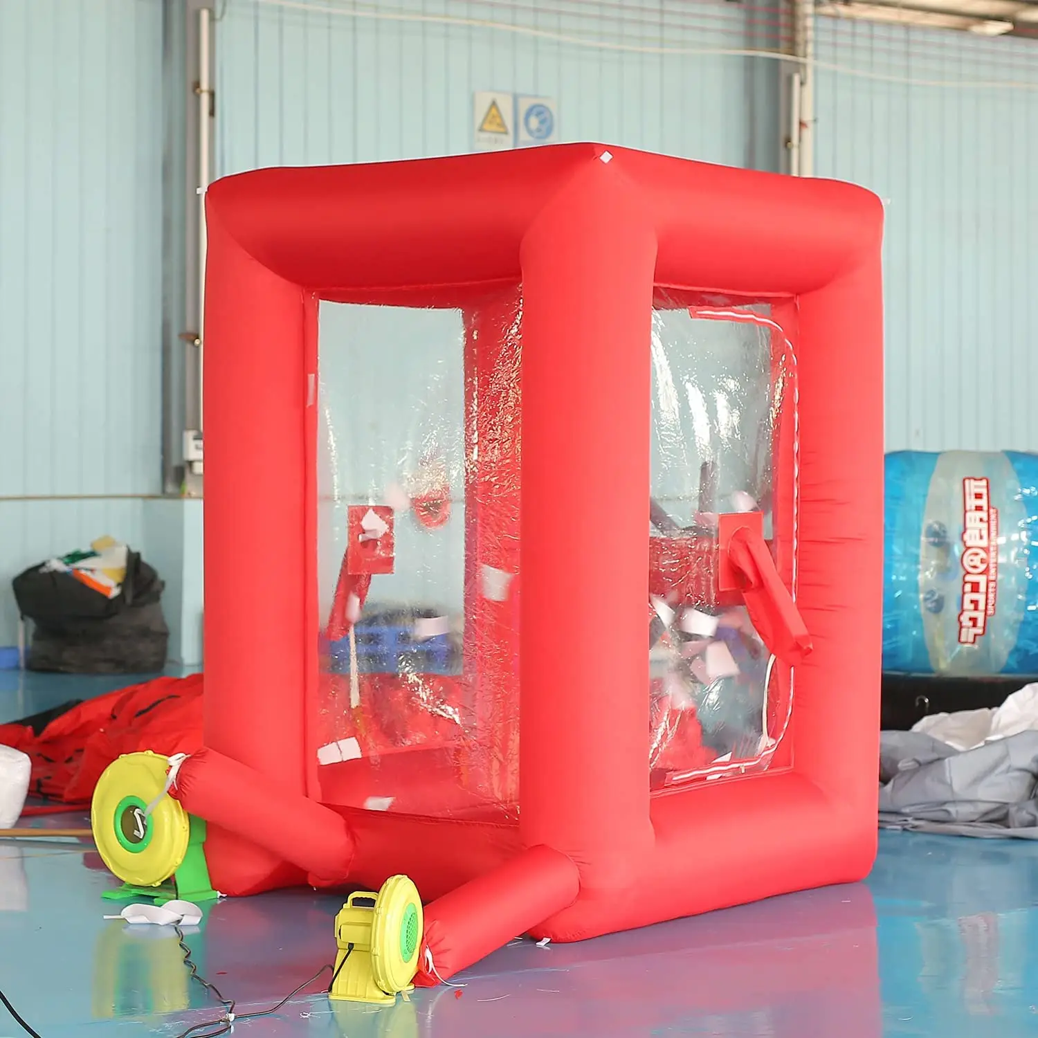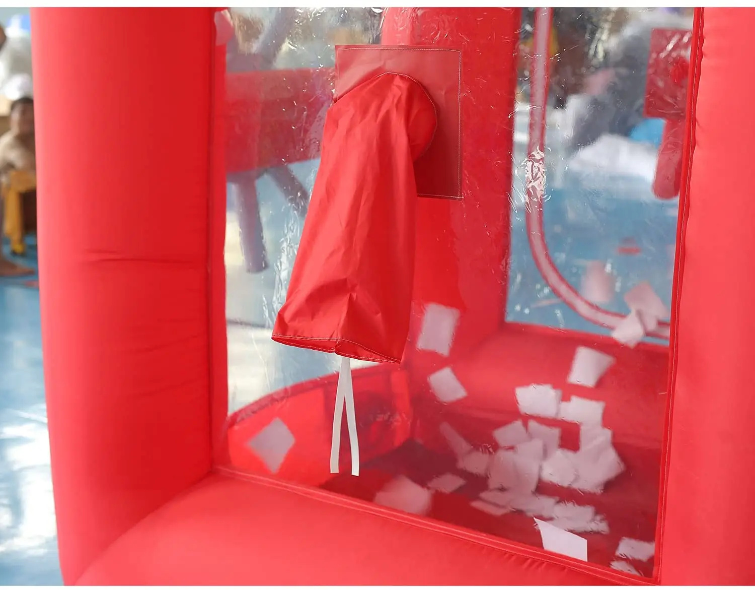 [Особенности] -- 1) большая дверь на молнии, чтобы люди могли легко войти внутрь. 2) два браслета с обеих сторон для игроков одновременно захватывают деньги за пределами стенда. 3) Нижний узел с мешочками для сохранения стабильности и безопасности. 4) верхнее отверстие может ускорить поток воздуха и вращение бумаги/денег внутри стенда. 5) Дополнительная воздушная трубка для вас, чтобы добавить воздуходувку, когда вы хотите сделать игры более сумасшедшими.