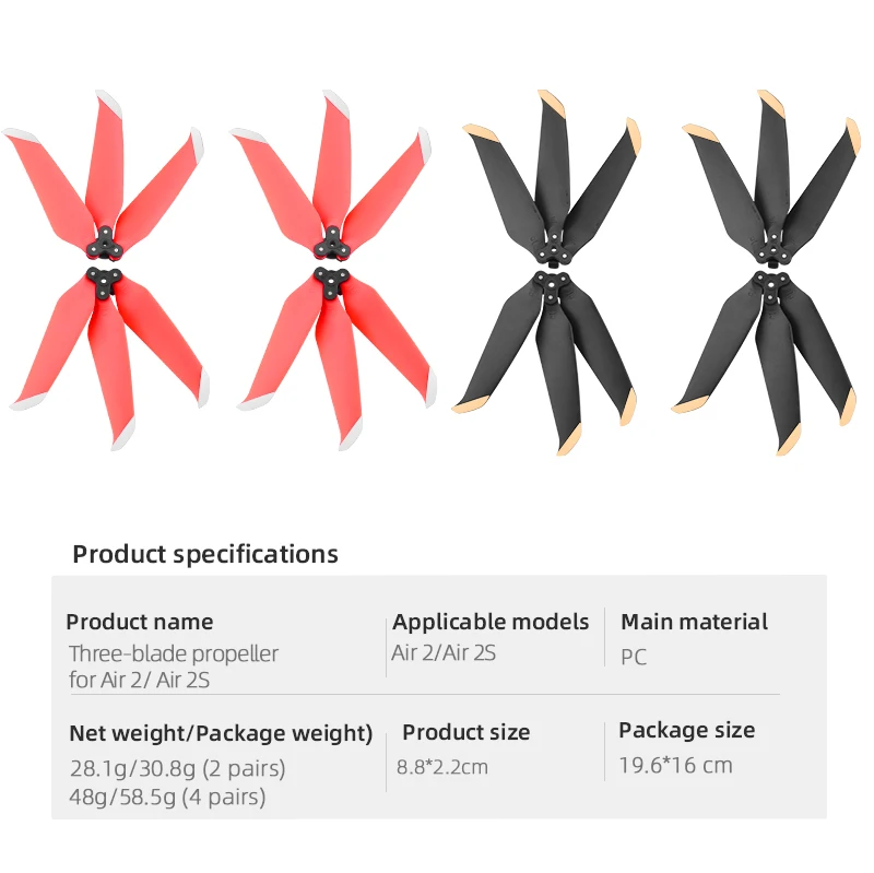 Отзывы о Three-Blade Propeller for DJI MAVIC Air 2/2S Drone Quick Release Noise Reduction Props Blade Replacement Wing Fans Accessories |