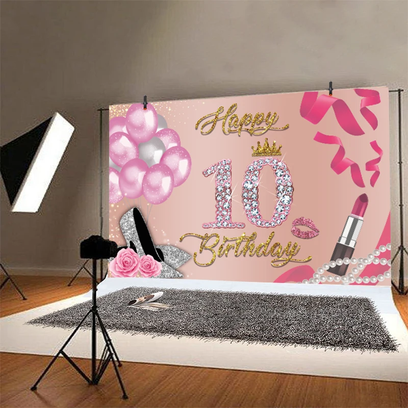Отзывы о Розовый фон для фотосъемки с изображением 10-го дня рождения девочек 10 лет