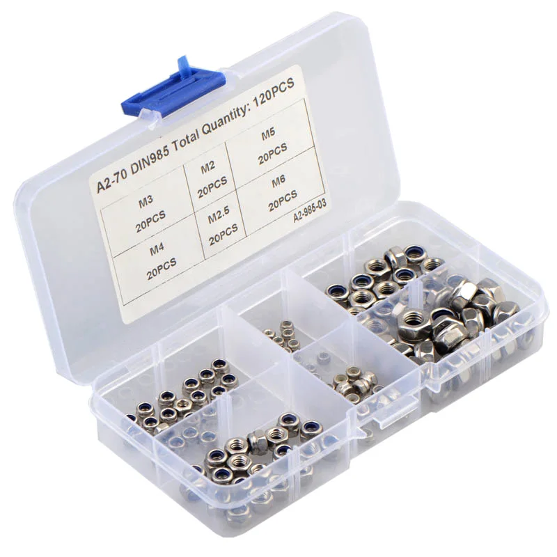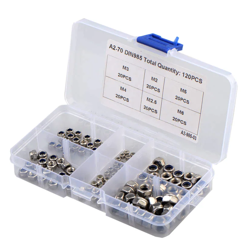 Отзывы о Набор нейлоновых шестигранных фиксирующих гайки 120 из нержавеющей стали M2 M2.5 M3 M4