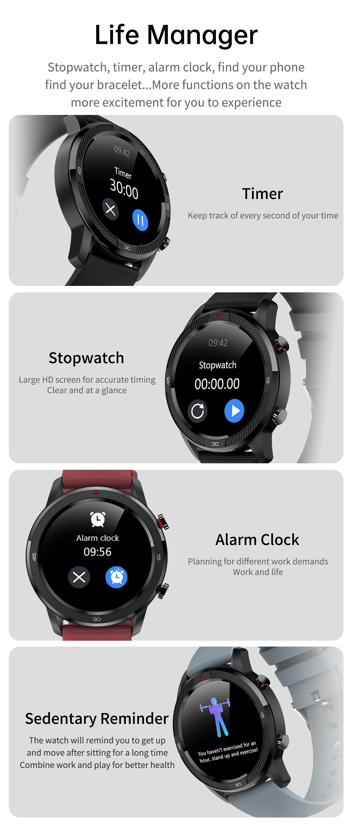 Основная функция s: двухрежимный вызов, локальная музыка, одновременная передача летающих песен, подключение наушников TWS, пульс, многофункциональная спортивная функция. Мониторинг кислорода в крови, многоуровневый нажимной самоопределяемый основной интерфейс, Интеллектуальный сплит-экран