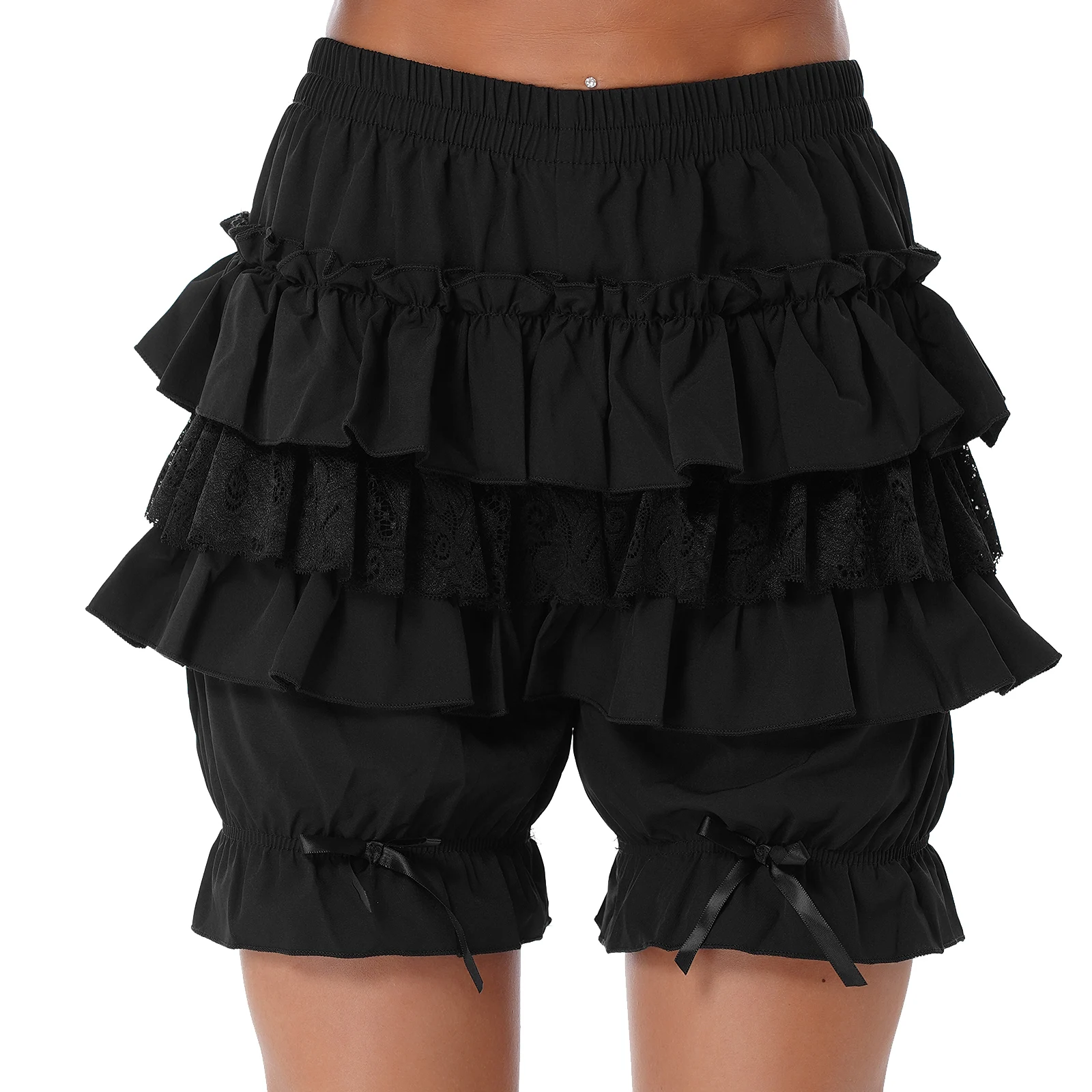Женский с кружевной отделкой Многослойные гофрированные Лолиты шорты с эластичным поясом бантом оборками шаровары.