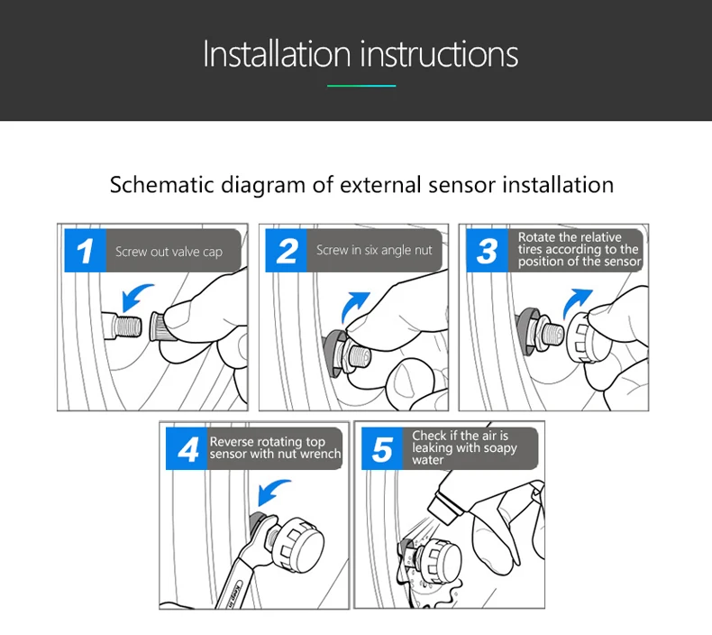 В: что такое TPMS?О: это система контроля давления в шинах, а также датчик давления в шинах. Подайте сигнал тревоги и показывайте давление и температуру автомобиля.В: сколько времени может использоваться сенсорная батарея?A: Встроенный датчик: 5 лет; Внешний датчик: 3 года. Мы предлагаем всем нашим клиентам бесплатную замену батареи, и покупателям нужно всего лишь заплатить около 3-4 $ за стоимость доставки.В: Как установить датчики?О: мы предлагаем установить Встроенные датчики профессиональным автомобильным центром; Внешняя установка может прочитать нашу страницу и руководство для справки.В: работает ли Солнечная зарядка в пасмурный день?О: Да. Как правило, полная Солнечная зарядка может работать в течение 3 дней, и она может работать в пасмурные и туманные дни.В: может ли он работать в снежный день?О: Да. Если TPMS показывает «Будильник N5», пожалуйста, не волнуйтесь и просто Управляйте автомобилем на расстоянии, чтобы шины двигались. Все будет в порядке. На внешние датчики будет влиять холодная среда, просто нужно управлять автомобилями.В: требуется ли подключение автомобильного прикуривателя для зарядки?О: Нет. Обычно он заряжается от солнечной батареи, но если вы долгое время встречаете очень плохую погоду или вам нужна срочная зарядка, вы можете использовать USB для зарядки. (USB не входит в комплект)В: Нужно ли включать/выключать TPMS?О: Нет. Он включится При ударной загрузке и выключится, если нет удара в течение 10 минут.