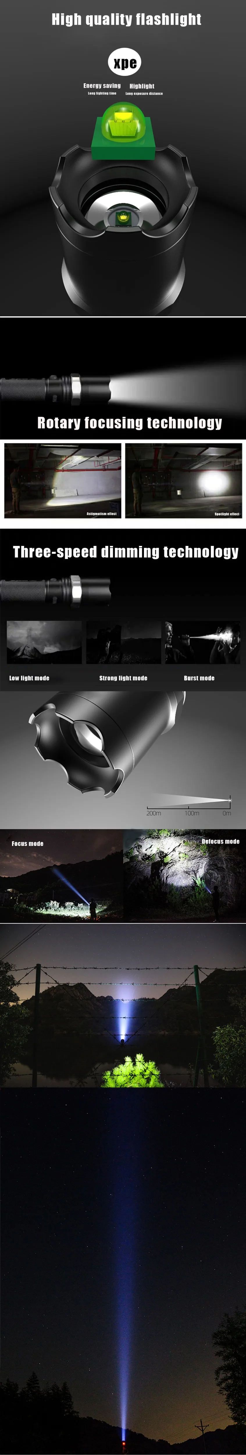 Отзывы о Светодиодный фонарик XPE Ультраяркий фонарь для кемпинга 3 режима масштабируемый