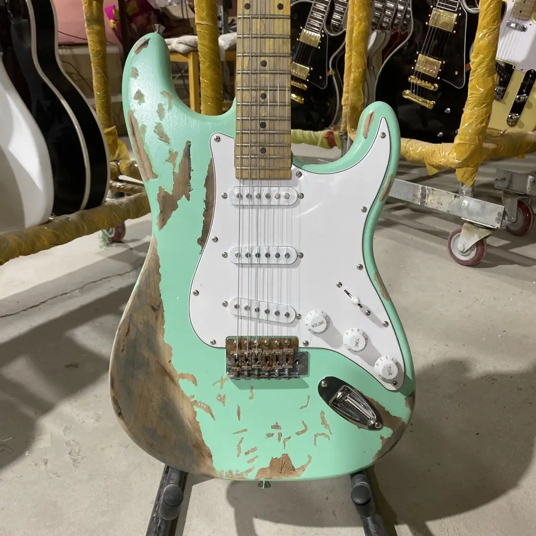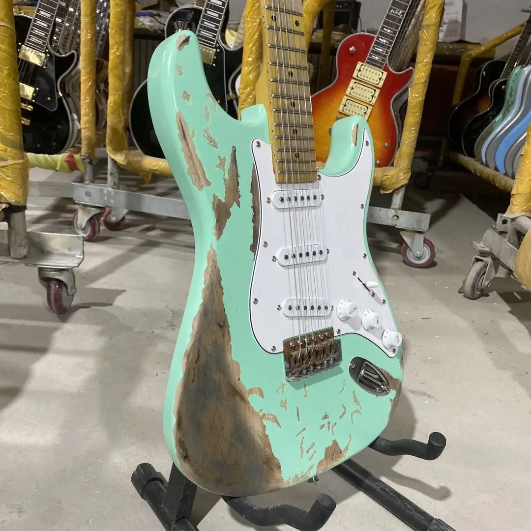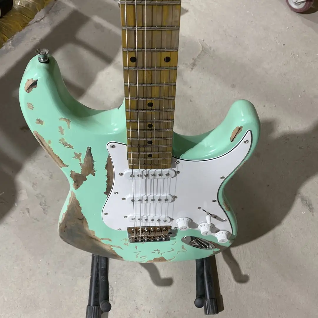 Состаренный ST электрогитара трава зеленый цвет Олдер тело клен гриф 100% ручная работа Высокое качество гитары Бесплатная доставка