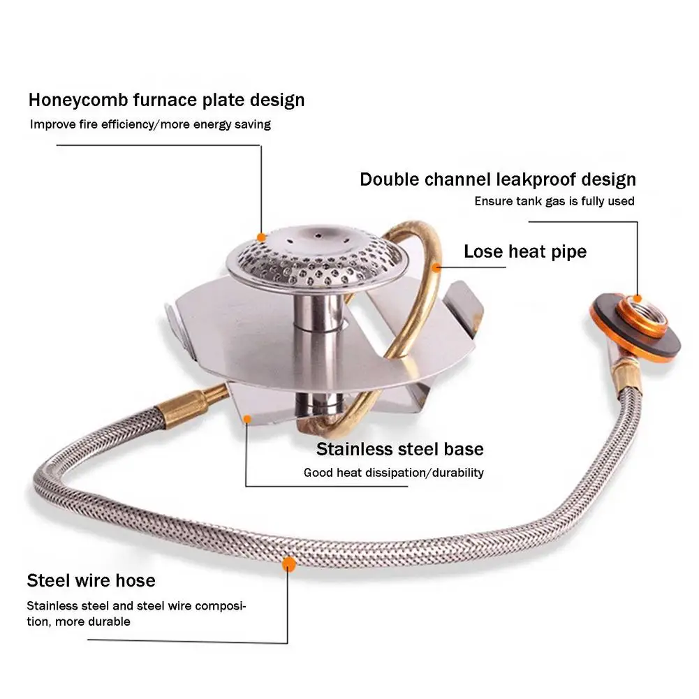 Портативная газовая горелка на открытом воздухе, портативная кухонная горелка, изготовленная из высококачественной и отборной нержавеющей стали, является практичным и удобным инструментом для тех, кто любит присоединяться к деятельности на свежем воздухе, такой как кемпинг и туризм. Приходите и получите его, это будет идеальной необходимостью для активного отдыха.