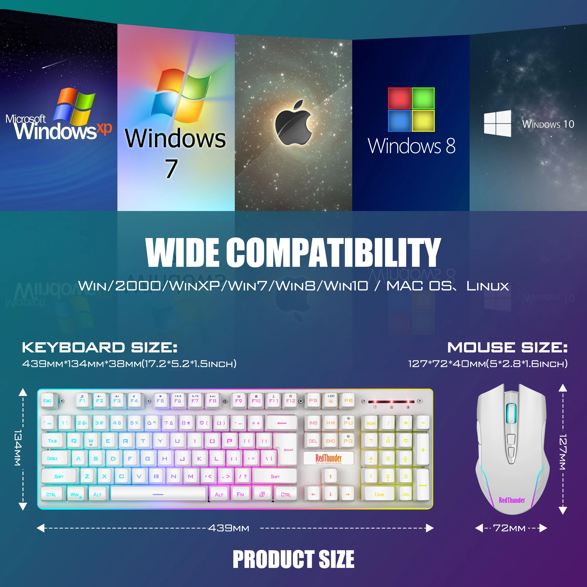 【Прочная эргономичная клавиатура и мышь 】 клавиши имеют 10 000 000 нажатий клавиш, так что вы можете держать его в течение следующего десятилетия! ABS keycaps принимает двухцветный процесс литья под давлением, буква символов никогда не выцветает. Плотный и прочный матовый металлический чехол, длительный срок службы и никогда не деформируется. Мышь идеально подходит для ладони, а защита от пота и скольжения обеспечивает полный контроль.
