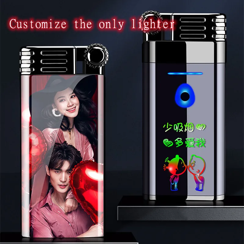 Пользовательские фото USB Зажигалка: вы можете сделать на заказ эту зажигалку с вашей фотографией и текстом, творческий и уникальный. Perfrct в подарок парню, мужу, папе, друзьям и другим (зарядка через USB входит в комплект)