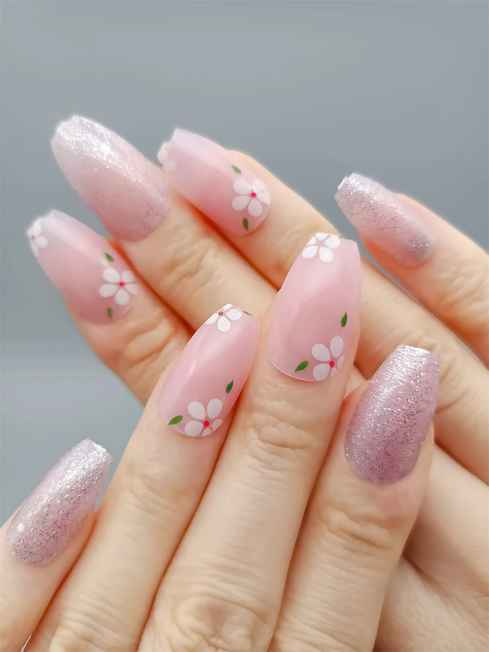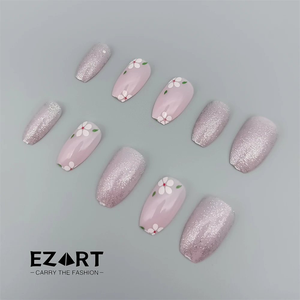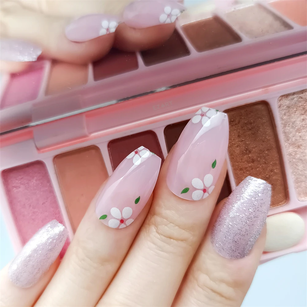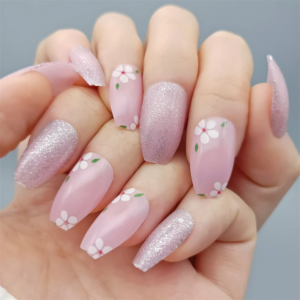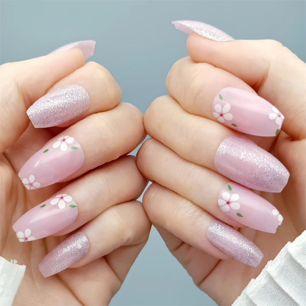 Отзывы о 24 шт. блестящие красивые накладные ногти розового цвета с блестящим цветочным