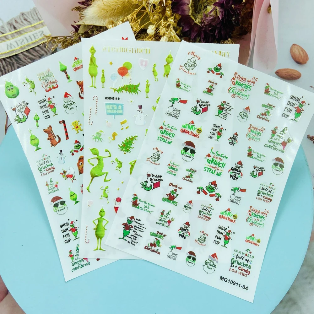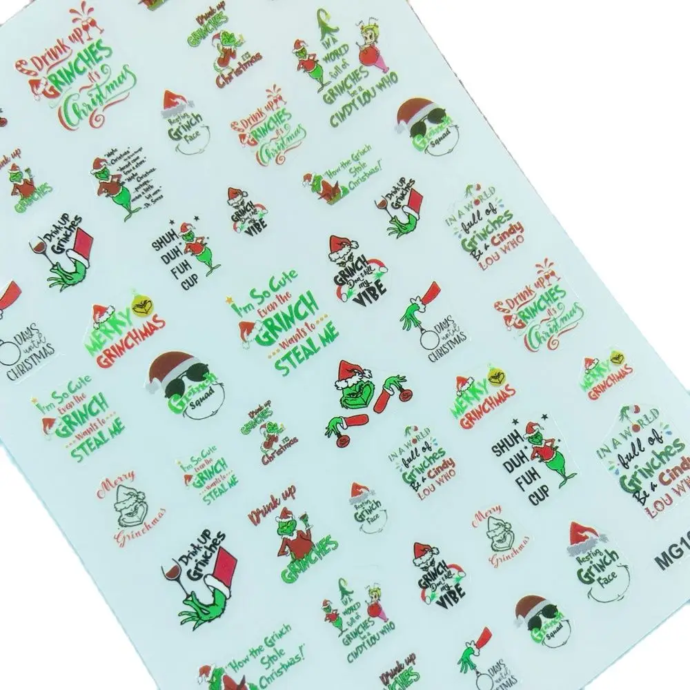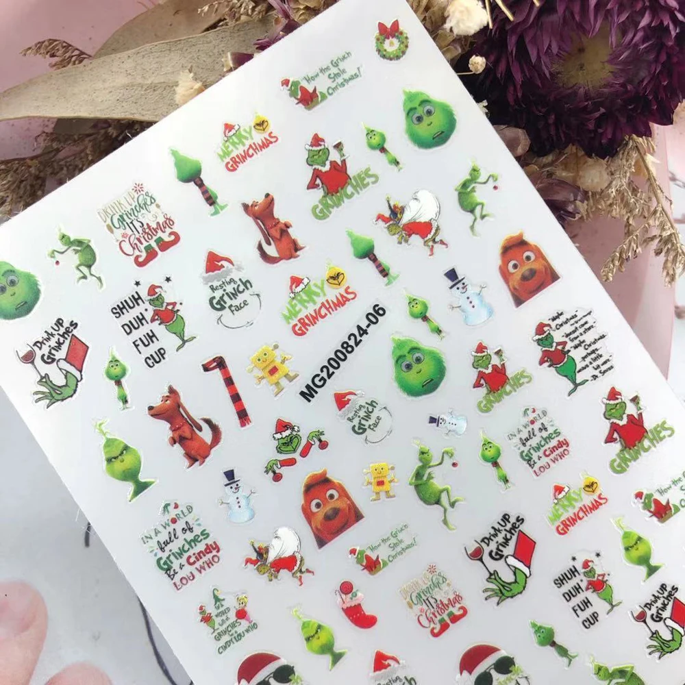 Бесплатная доставка клейкие наклейки для ногтей, Санта/Снеговик/собака/монстр/Рождество/цветок DIY наклейки для ногтей модные наклейки для девочек