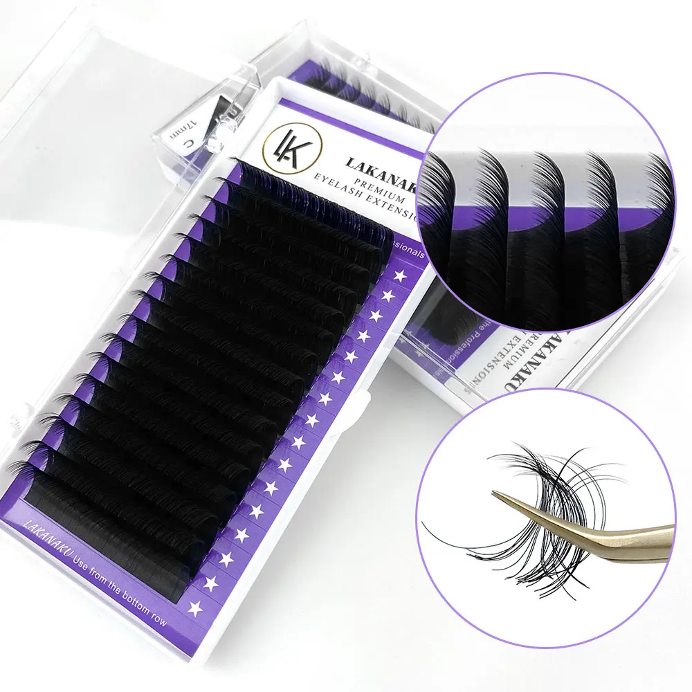 Индивидуальные вьющиеся ресницы очень мягкие, натуральные и глянцевые, чтобы создать идеальный и привлекательный внешний вид, Профессиональное использование наращивания ресниц, с очевидным водонепроницаемым эффектом, без деформации.