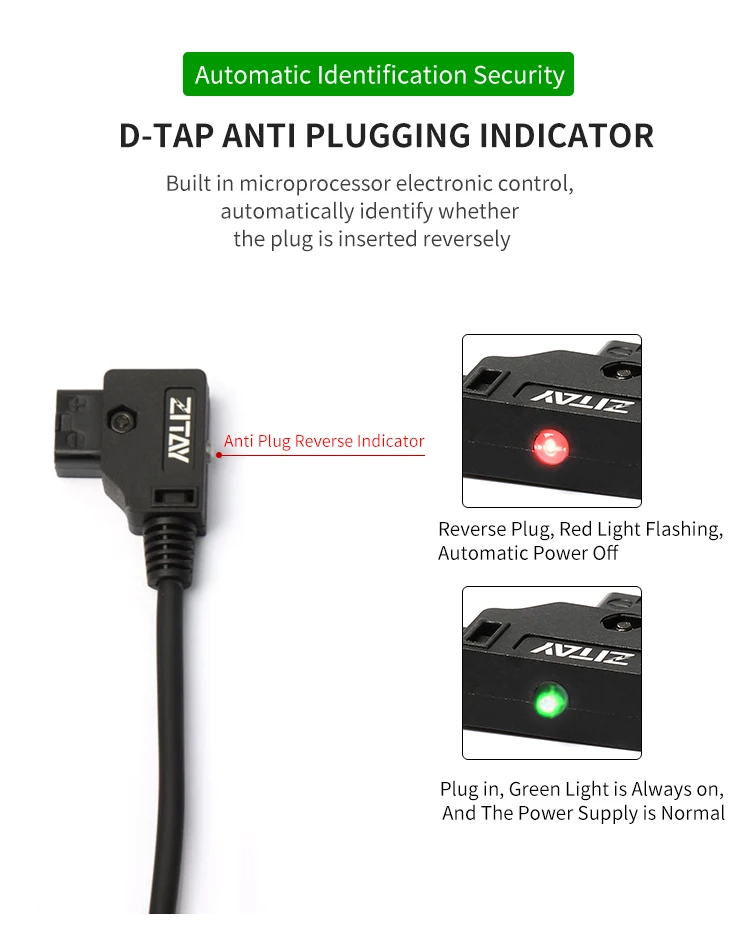 Эта пустая батарея имеет D-TAP индикатор против подключения, который построен с микропроцессорным электронным управлением, он может автоматически определить, подключен ли штекер обратно. Это исключительно уникальный дизайн для наших моделей аккумуляторов.