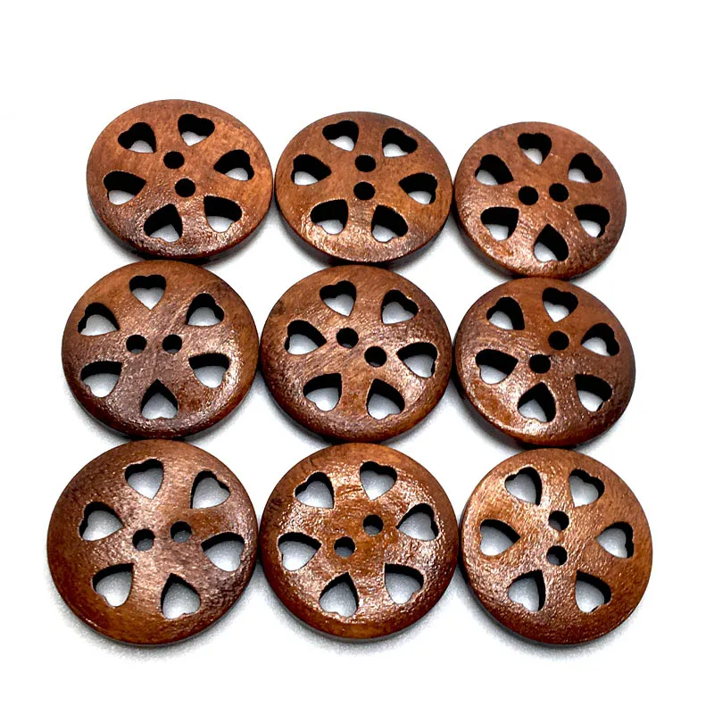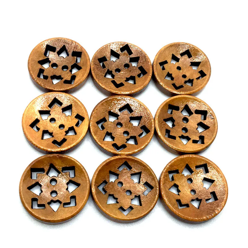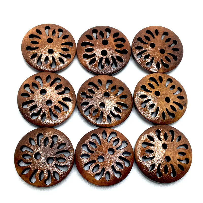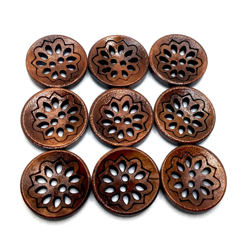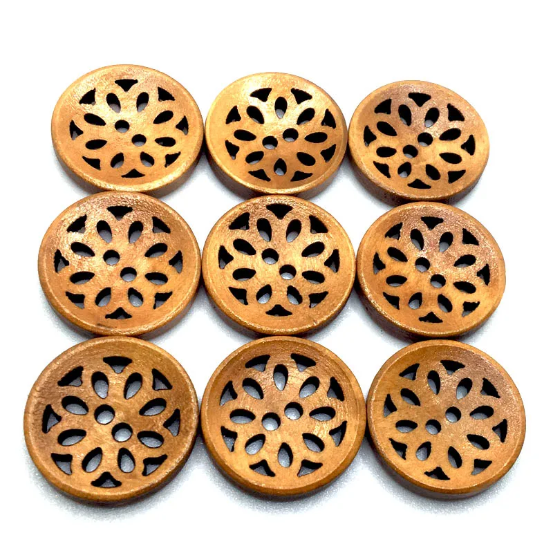 Отзывы о 50PCS 20mm 19 Style Exquisite 2 Hole DIY Hollow Out Flower Wood Button For Clothing Scarf Sewing Accessories Wooden Crafts SC351 - купить по