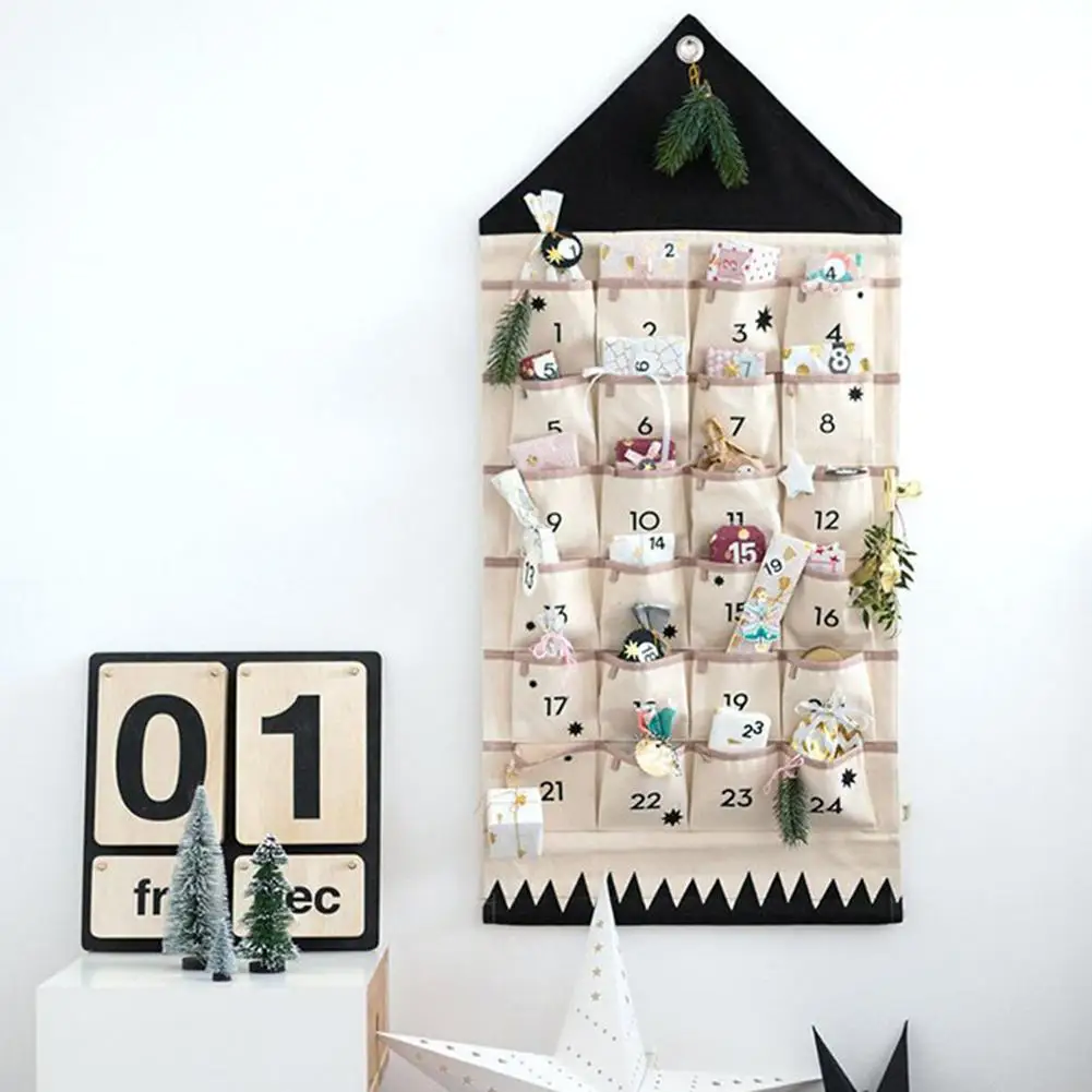 Отзывы о Тканевый новогодний календарь на завязках с 24 карманами для украшения вечерние -