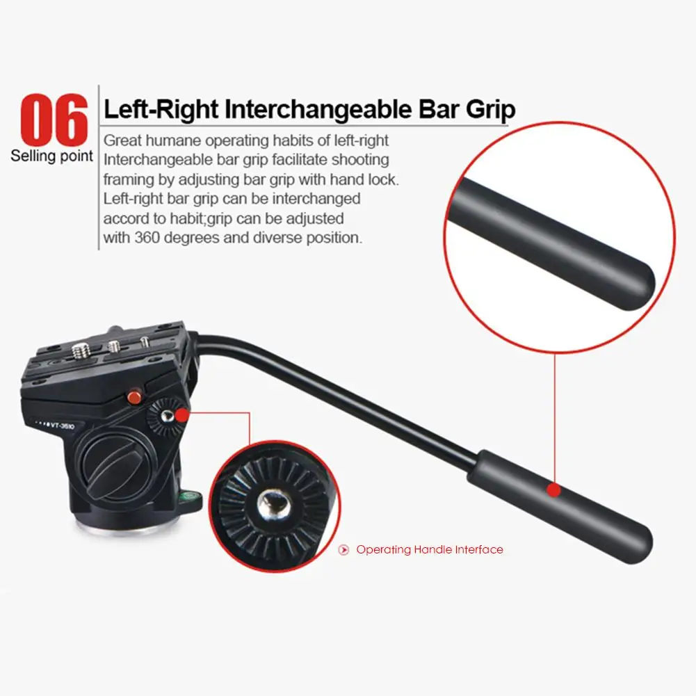 1. VT-3510 является инновационной и профессиональной видеоголовкой, которая разработана для простого лучшего и наиболее идеального решения для HD DSLRs. И он имеет скользящую пластину, которая перемещается, чтобы сбалансировать последние взаимозаменяемые камеры объектива.