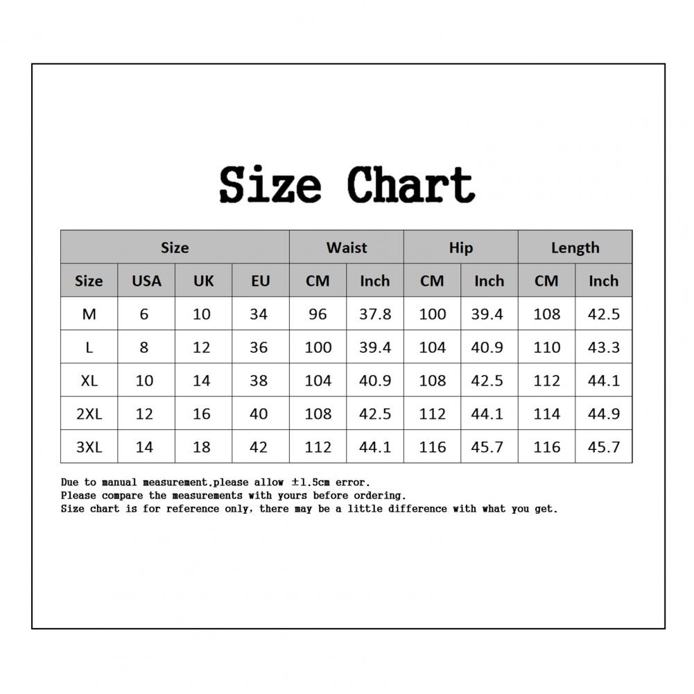 Size: 3XL, Waist: 112cm/44.1", Hip: 116cm/45.7", Length: 116cm/45.7" (Approx.)
