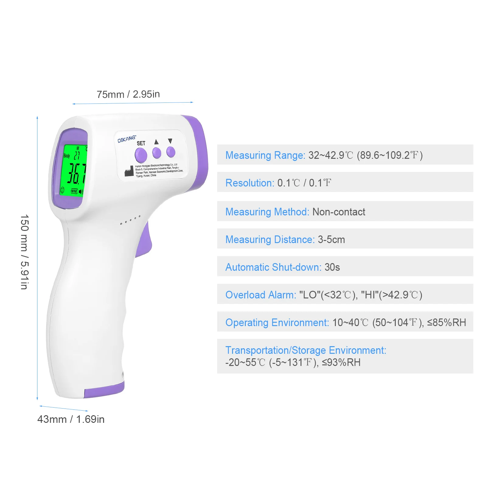 Диапазон измерения: 32 ~ 42,9 ℃ (89,6 ~ 109,2 ℃)