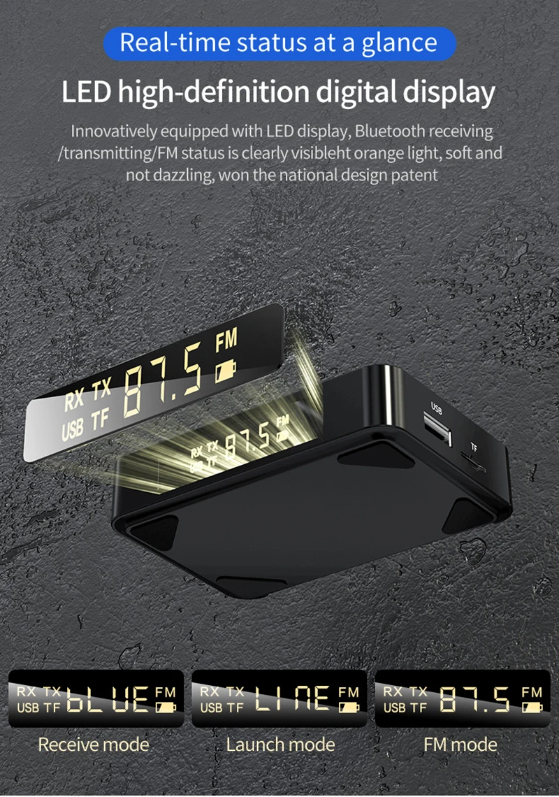 ◆Bluetooth прием (RX), Bluetooth передача (TX), FM передача три в одном дизайне.