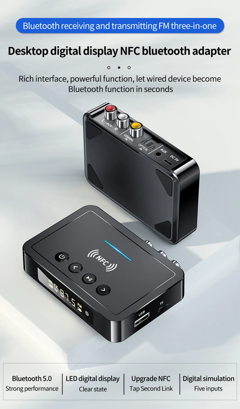 Отзывы о NFC светодиодный цифровой дисплей Bluetooth 5 0 аудио передатчик приемник 3 мм AUX RCA