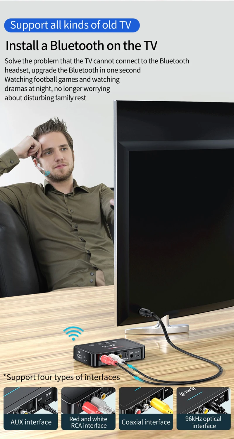 【Встроенный цифровой аналоговый чип, поддержка цифрового оптического волокна, коаксиальный, AUX, RCA интерфейс.