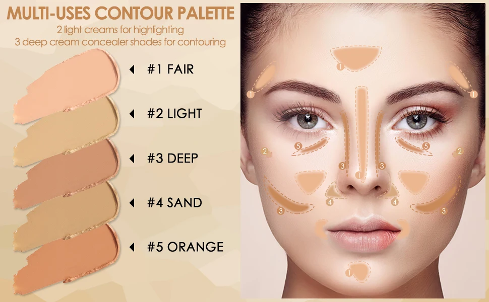 【 Мульти-Uses】 5 полезных цветов все в одном, помогая покрыть дефекты, такие как покраснение, темные круги, шрамы, темные пятна и пигментация, удовлетворить все ваши потребности, чтобы покрыть пятна.