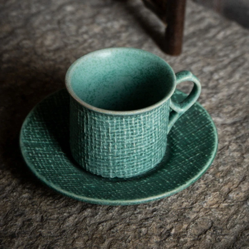 2. Грубые керамические кофейные чашки, японские Ретро чашки костюма и блюдца, размер и емкость подходят для домашнего или офисного использования.
