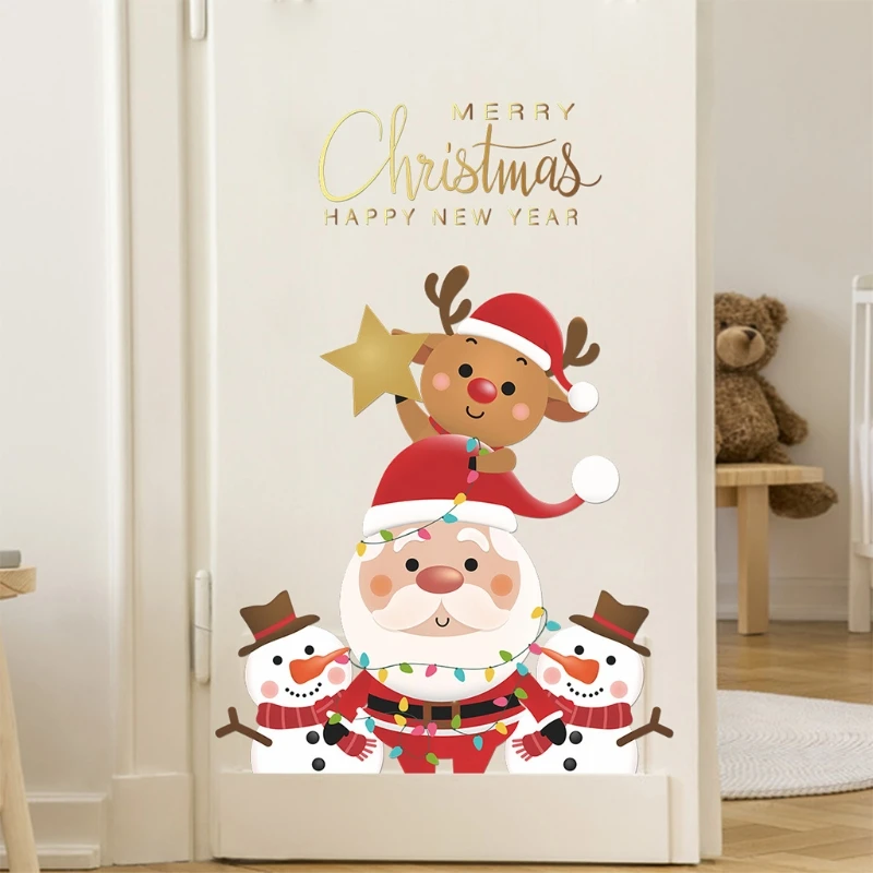 RXJB Милая Рождественская Наклейка на стену для маленьких детей, для гостиной, Рождественская елка, Санта Клаус, наклейка на окно, стекло, статический ДекорOOTDTY