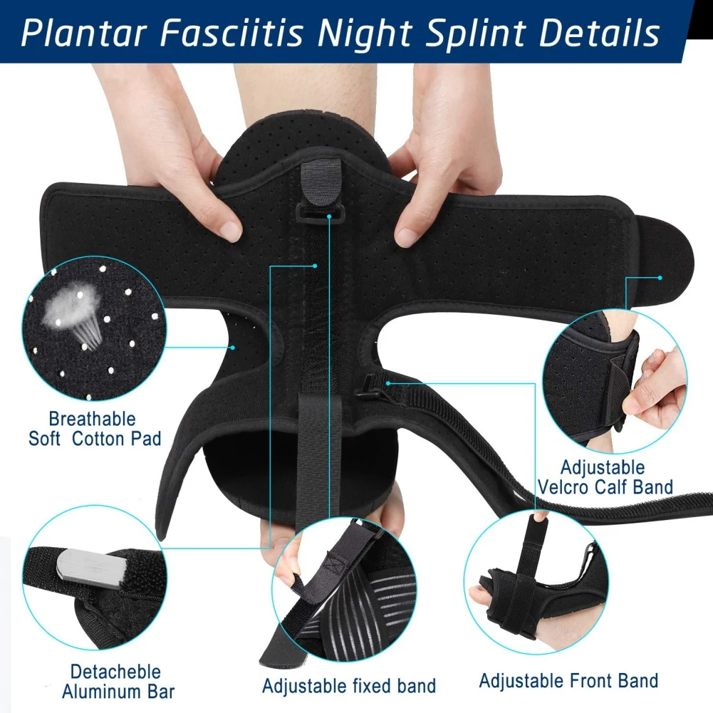 Особенности:1. Ночные шипы для подошвенного фасцита продлевают вашу стопу и облегчают болезненные синдромы подошвенного фасцита и ахиллового тендонита во время сна, включая плоские арки, капельницы, пяточные шпоры и многое другое! Идеально подходит для рельефа подошвенного фасцита.