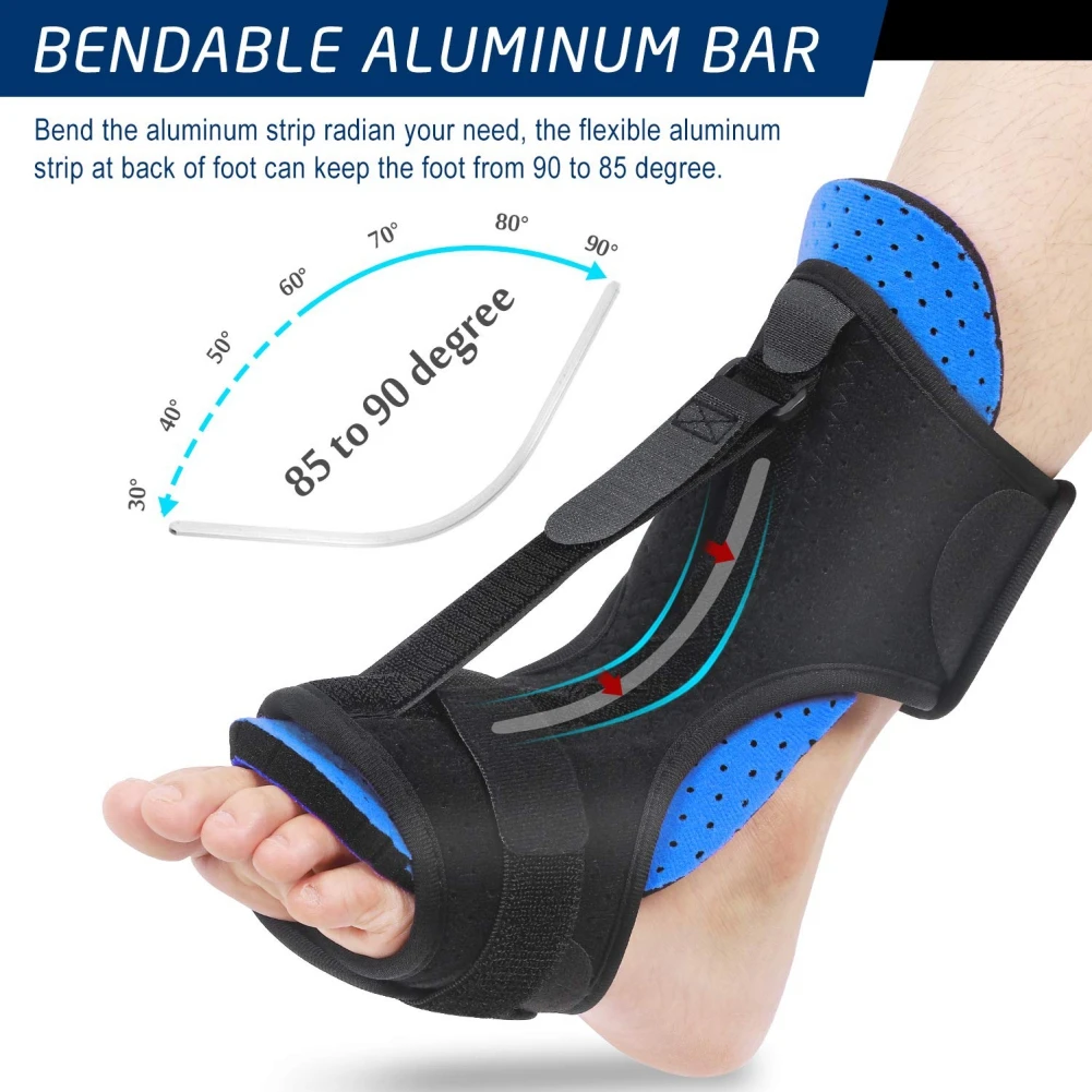 2. Гибкая легкая алюминиевая планка нашего подошвенного фасциита Ночная шина на подъеме может держать ваши ноги под углом 90 градусов и держать вашу ногу в сгибаемом положении.