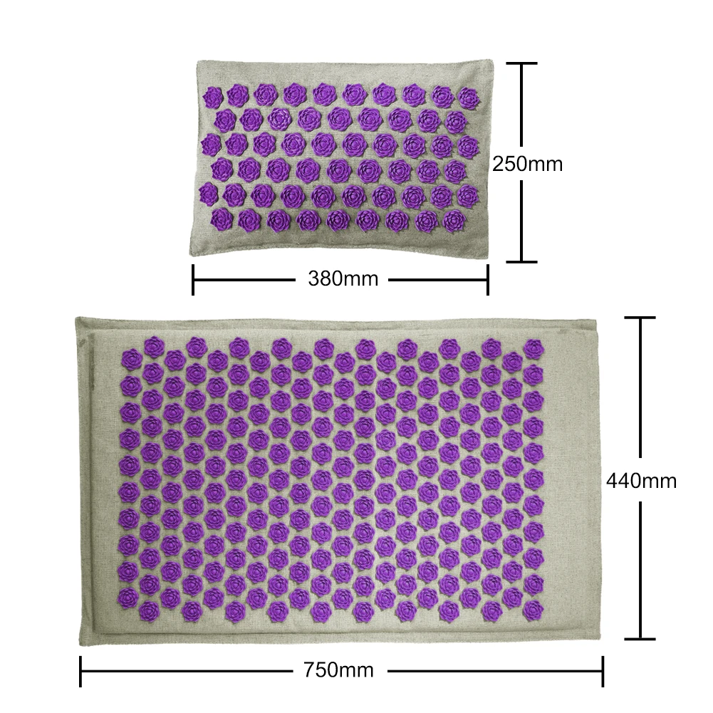 Размер продукта: (коврик для акупунктуры) 750*440*30 мм/29,5*17,3 * 1.2in (подголовник)380mm*250mm*40mm/14.96*9.84*1.57in