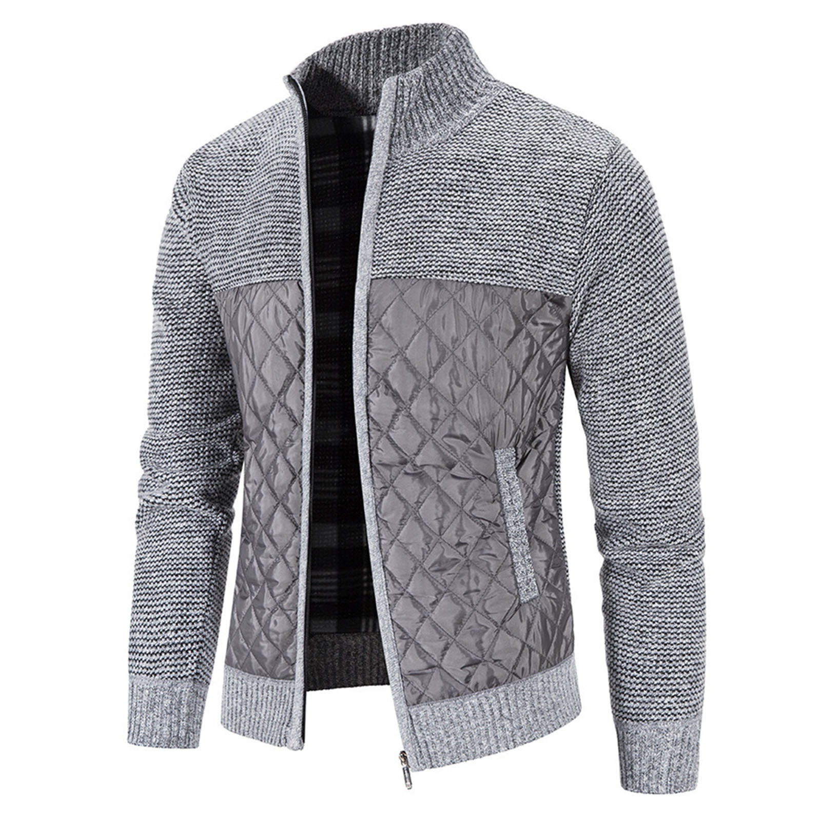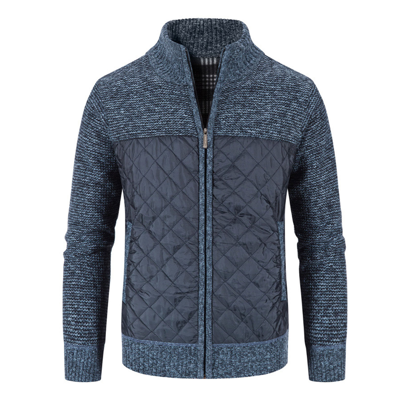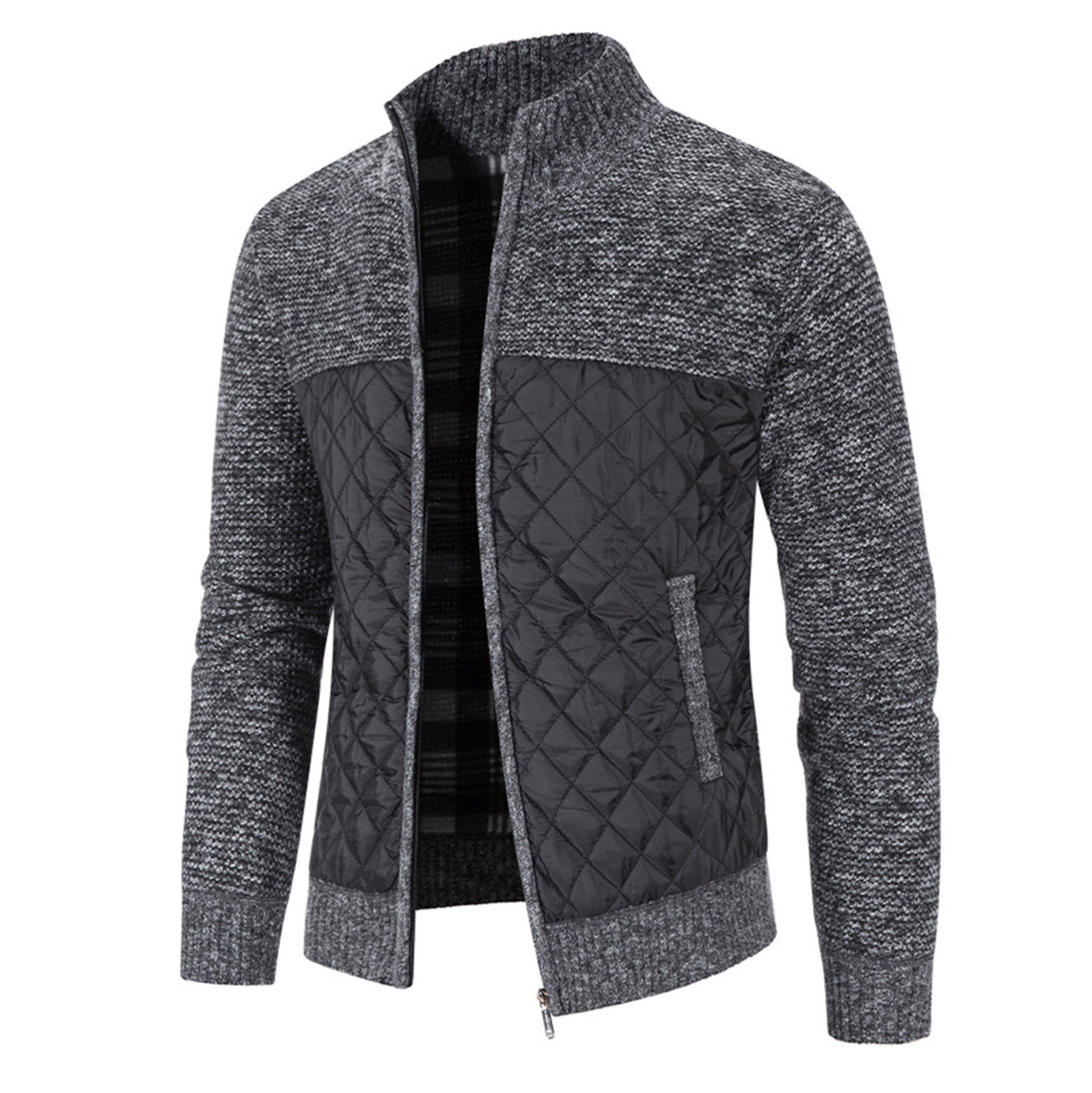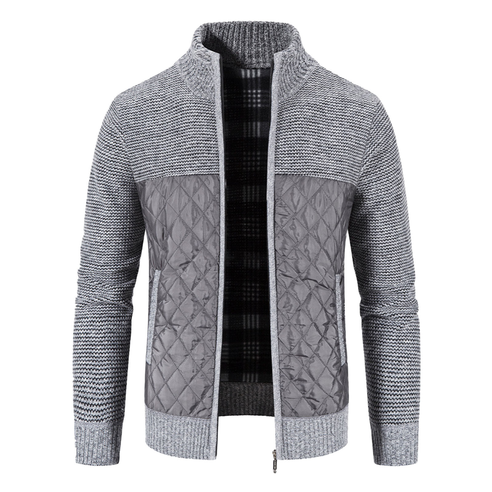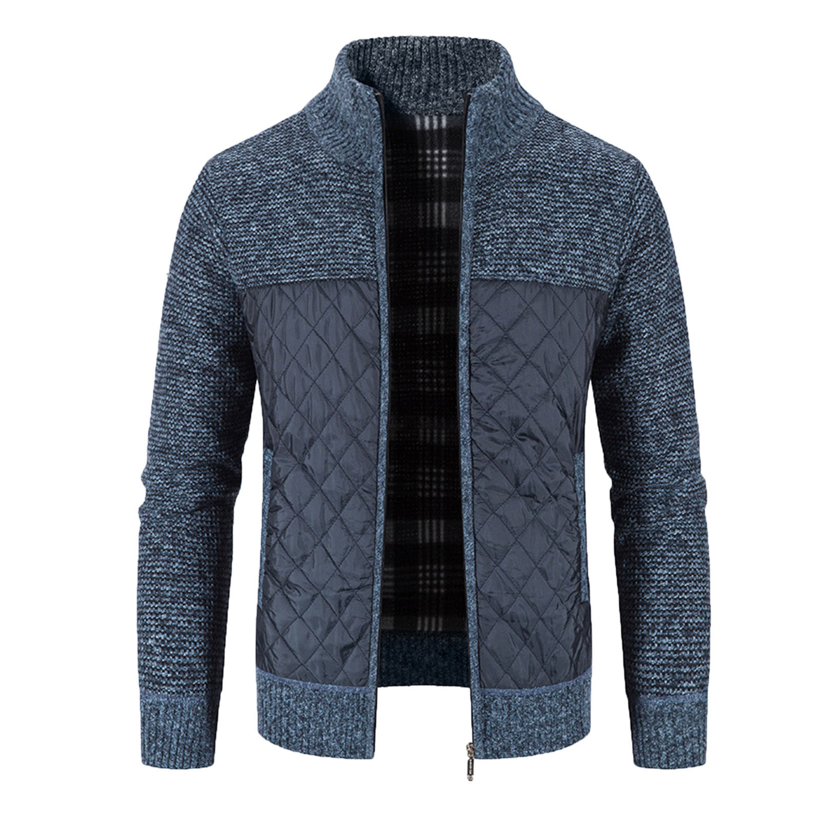 Мужской кардиган с хлопковой подкладкой, трикотажная куртка с вертикальным воротником